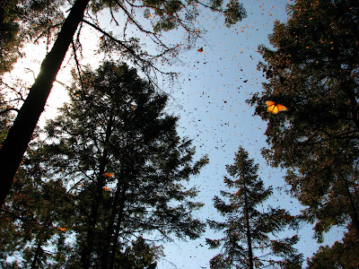 After leaving Puerto Escondido, Mark and I rode north and inland. Since we have already ridden the whole west coast, we thought we'd see what inland Mexico had to offer. From Zihuatanejo we rode into the mountains to the town of Patzcuaro. In Patzcuaro we learned that February was a great time of year to go see the Monarch Butterflies. The warmer temperatures mean you don't have to hike as far up the mountain to see them, and because December and January are the peak season, we had the forest pretty much to ourselves. Being in a forest where the only sound you hear is millions of butterflies flapping their wings is something I cannot describe. It was both strange and beautiful to see the monarchs covering every surface in sight.